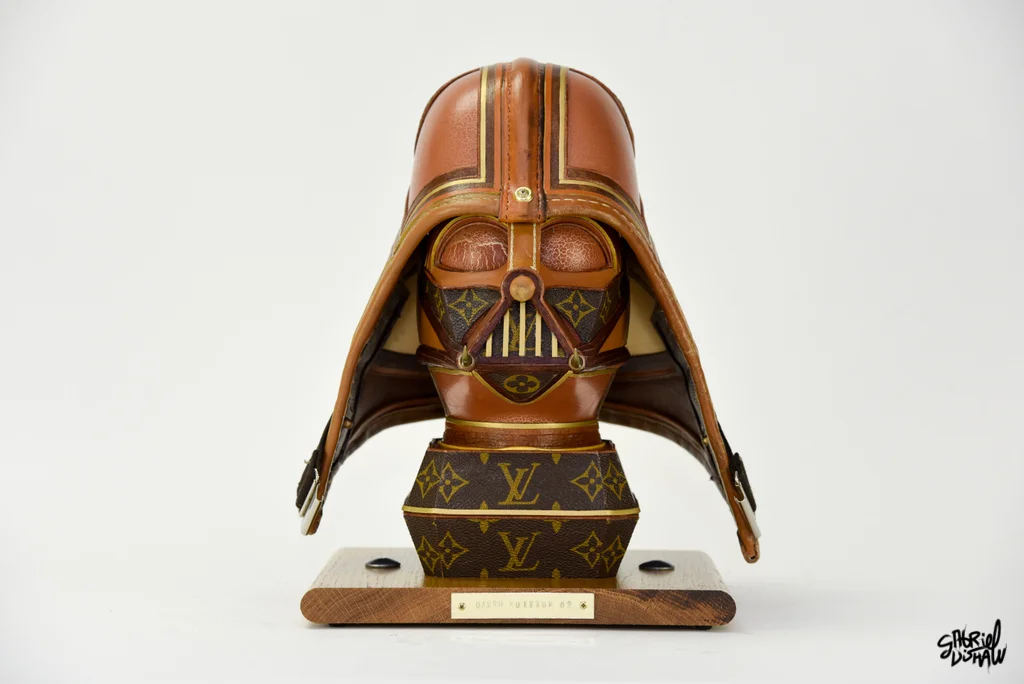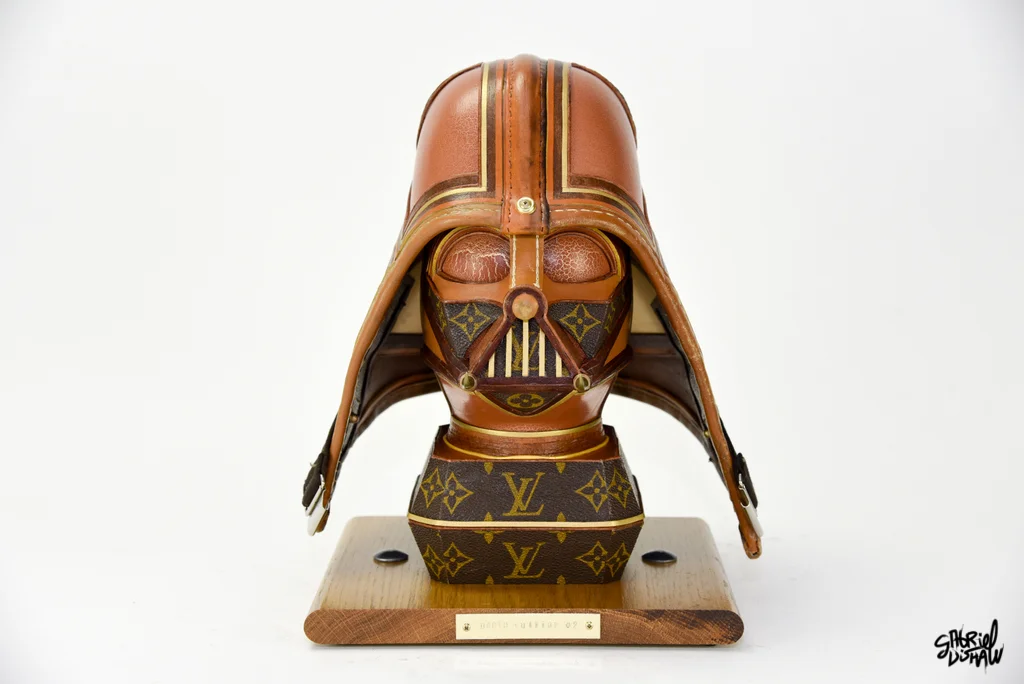This upcycled Vader was inspired/modeled after the iconic Luxury Brand Louis Vuitton and was created using a vintage piece of LV luggage.