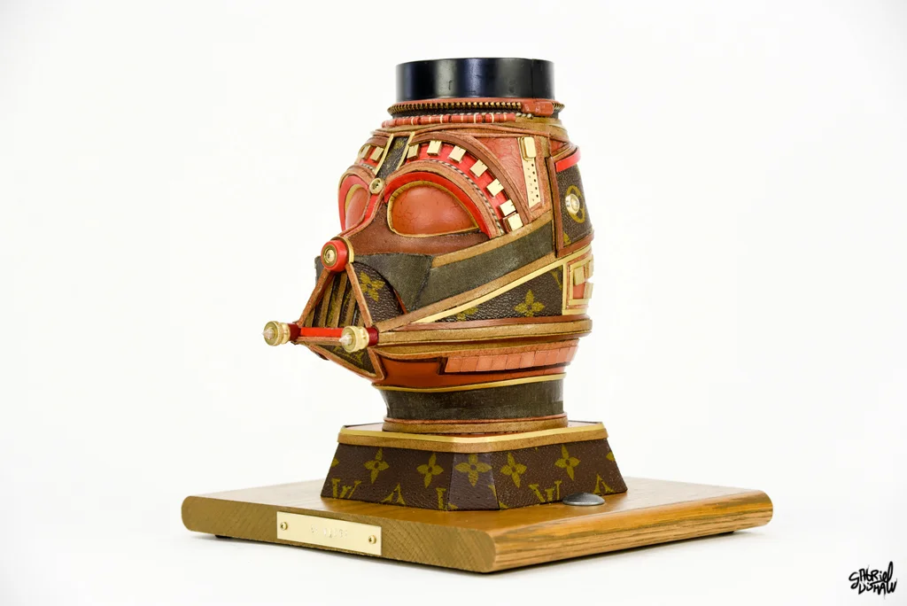 This upcycled Vader was inspired/modeled after the iconic Luxury Brand Louis Vuitton and was created using a vintage piece of LV luggage.