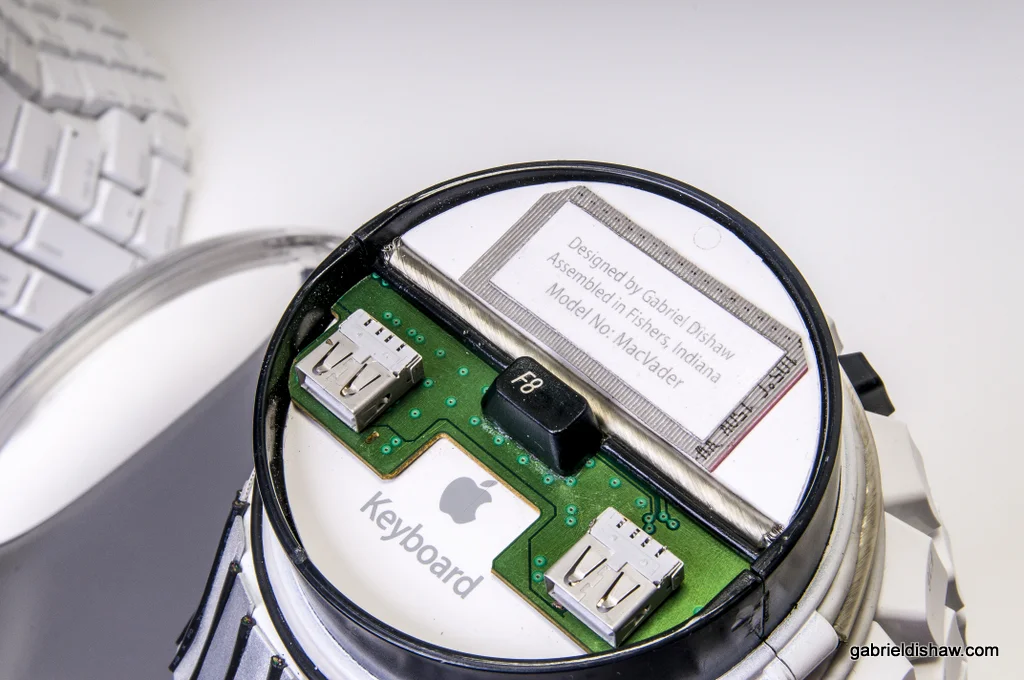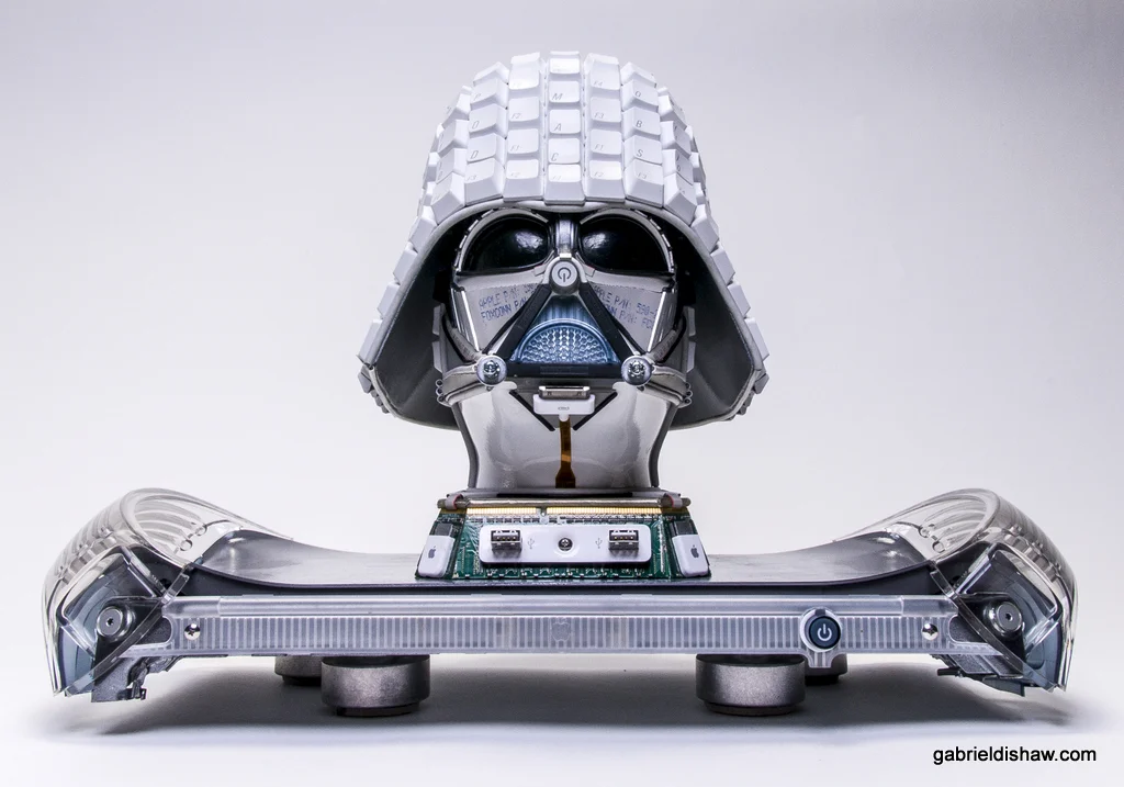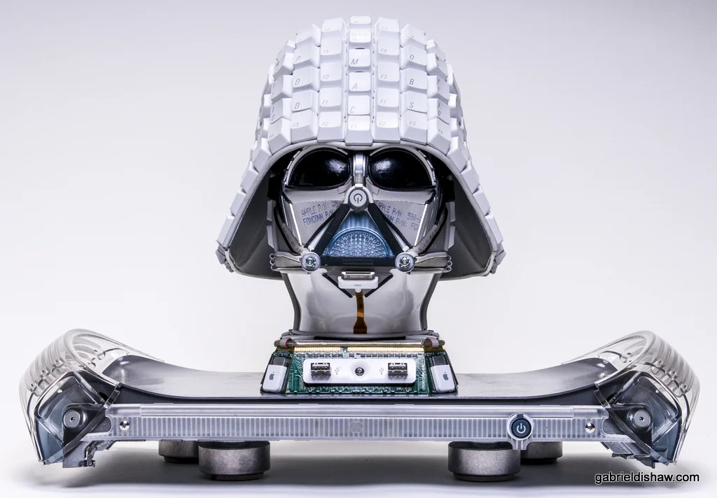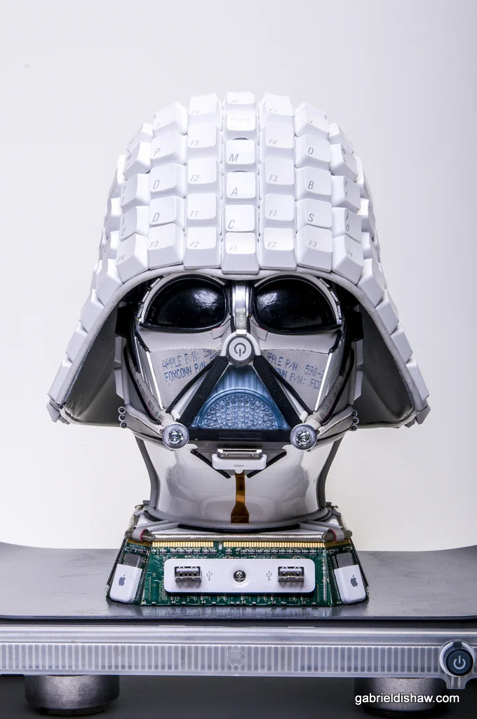 Materials Used: This piece was created entirely from upcycled Apple computer parts such as: keyboards, Mac G4, data cables, USB cords, mice, RAM, and wire.