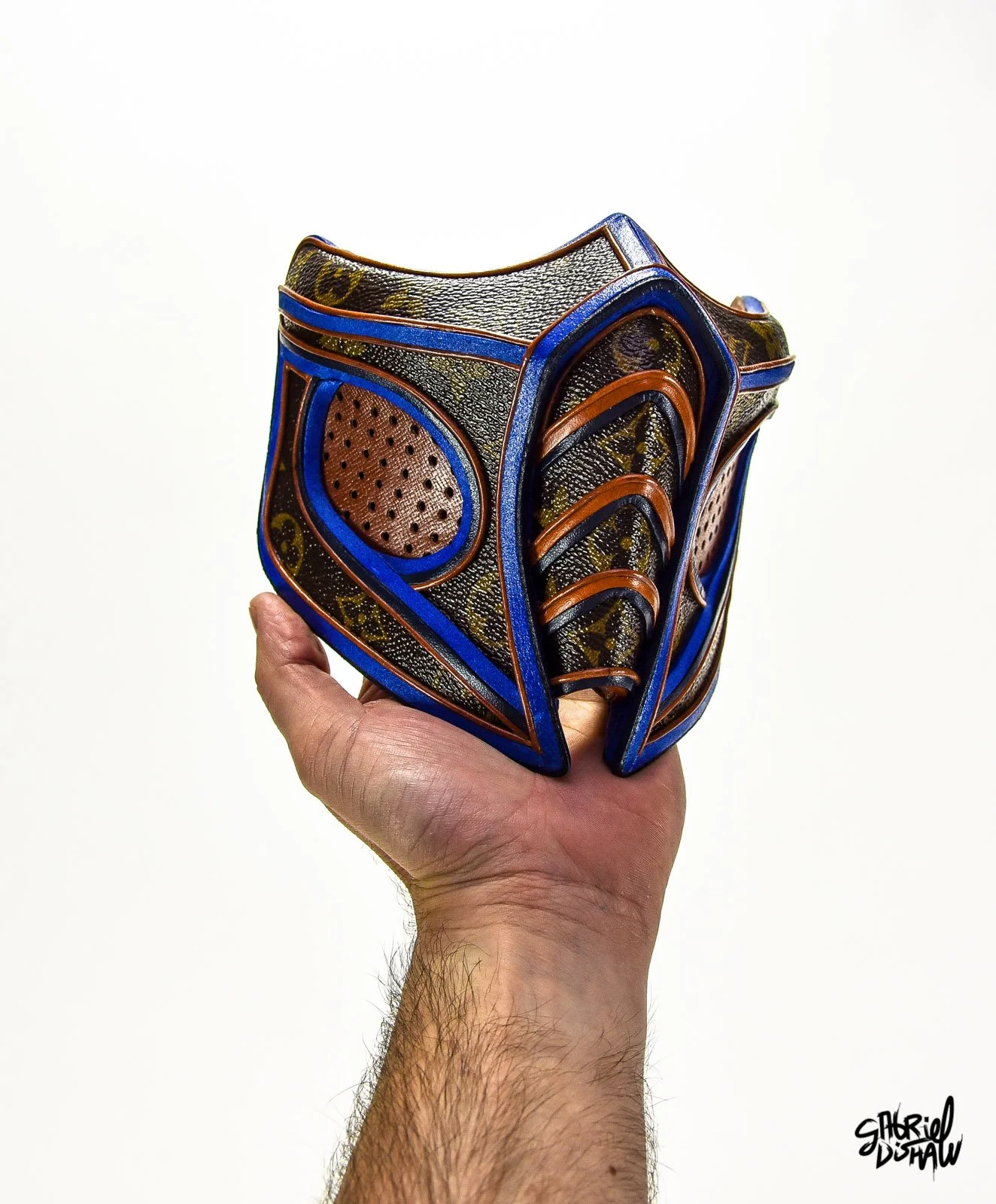 Smoke LV x Gucci Mask Series reimagines one of Mortal Kombat’s most mysterious ninjas through the fusion of two iconic fashion houses. Handcrafted by Gabriel Dishaw using authentic vintage Louis Vuitton and Gucci materials alongside reclaimed components, this series merges gaming nostalgia with couture craftsmanship.