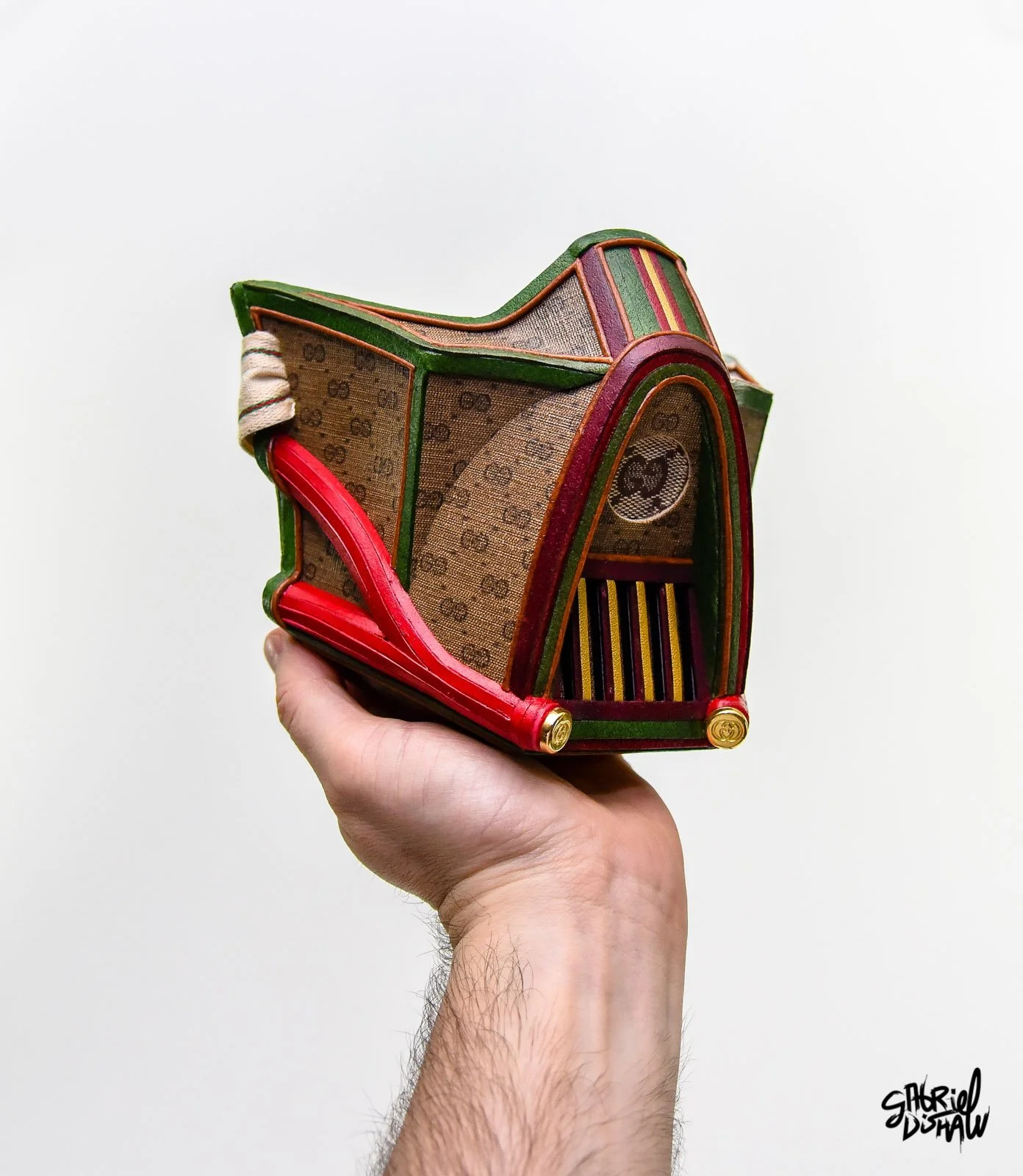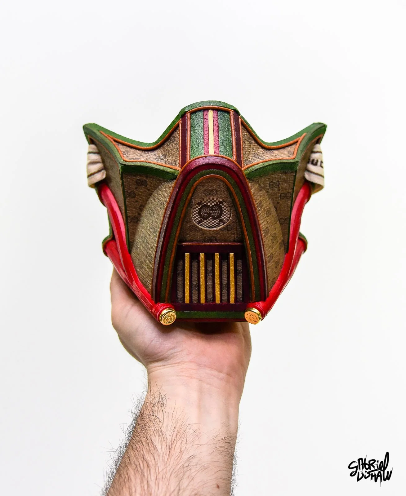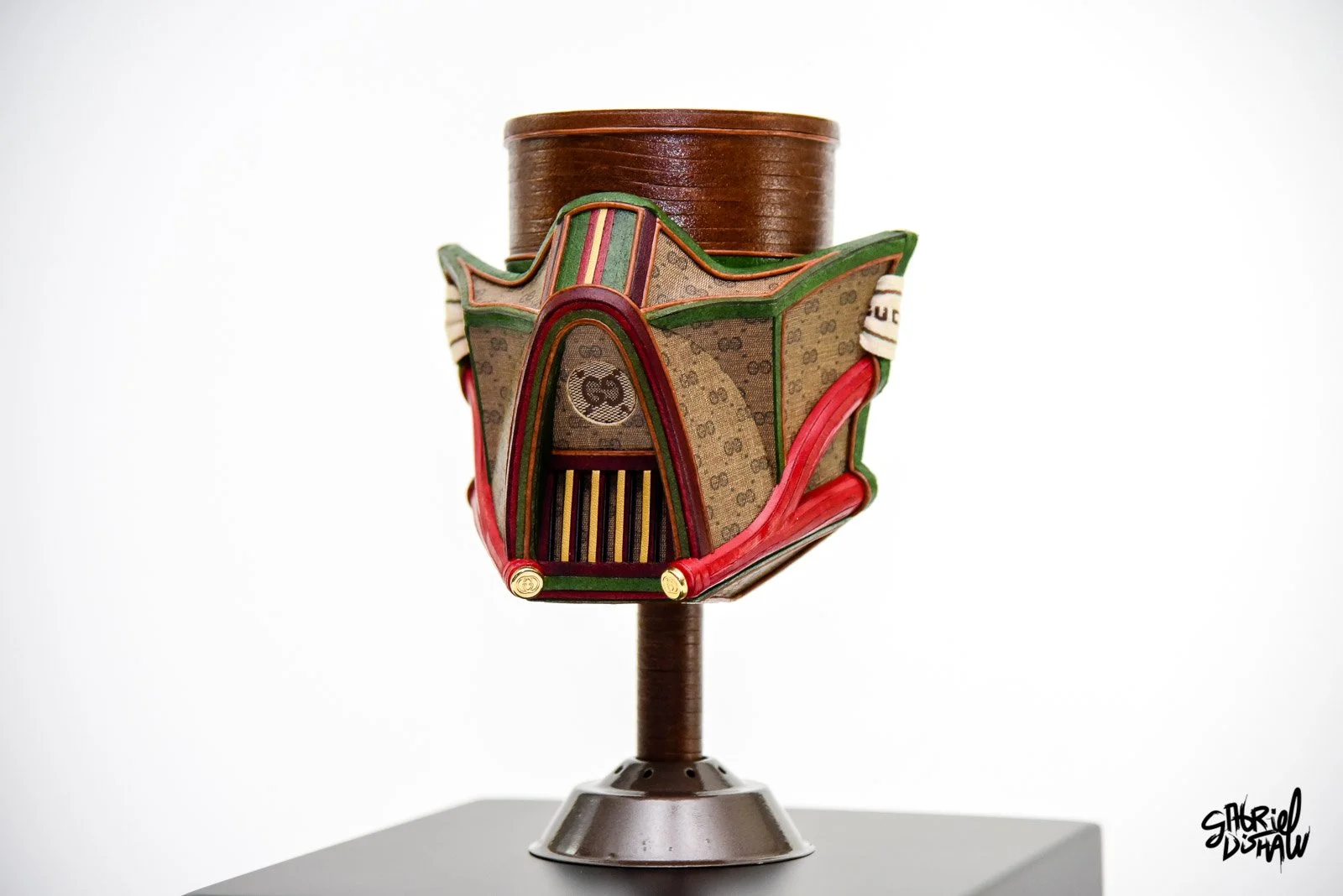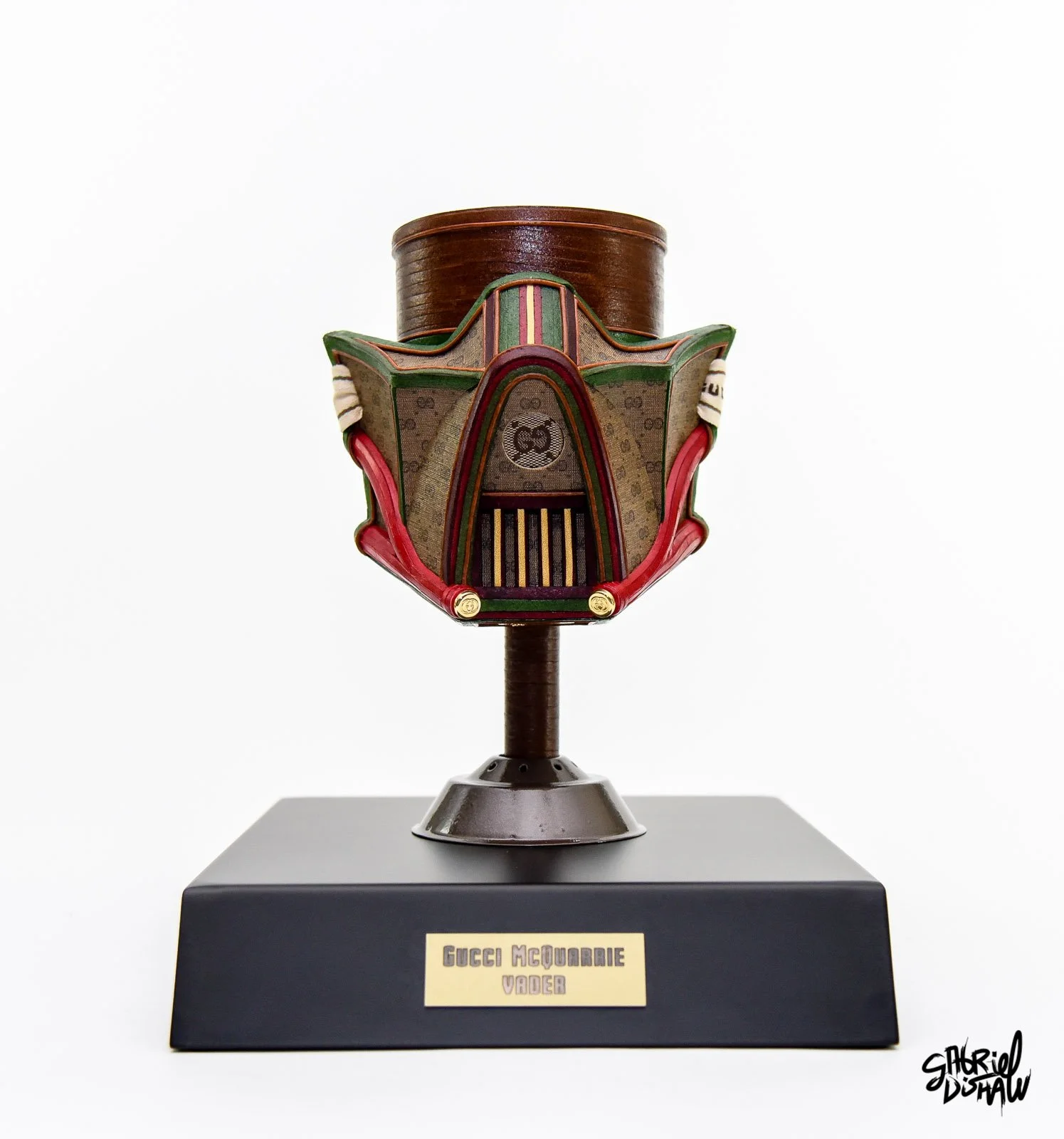Star Wars Half Mask Series reimagines Darth Vader’s and other iconic helmets through Gabriel Dishaw’s signature fusion of luxury design and sustainability. Each mask in the series is meticulously handcrafted using authentic upcycled Louis Vuitton and Gucci materials and found components, offering a refined, deconstructed take on one of pop culture’s most recognizable symbols.