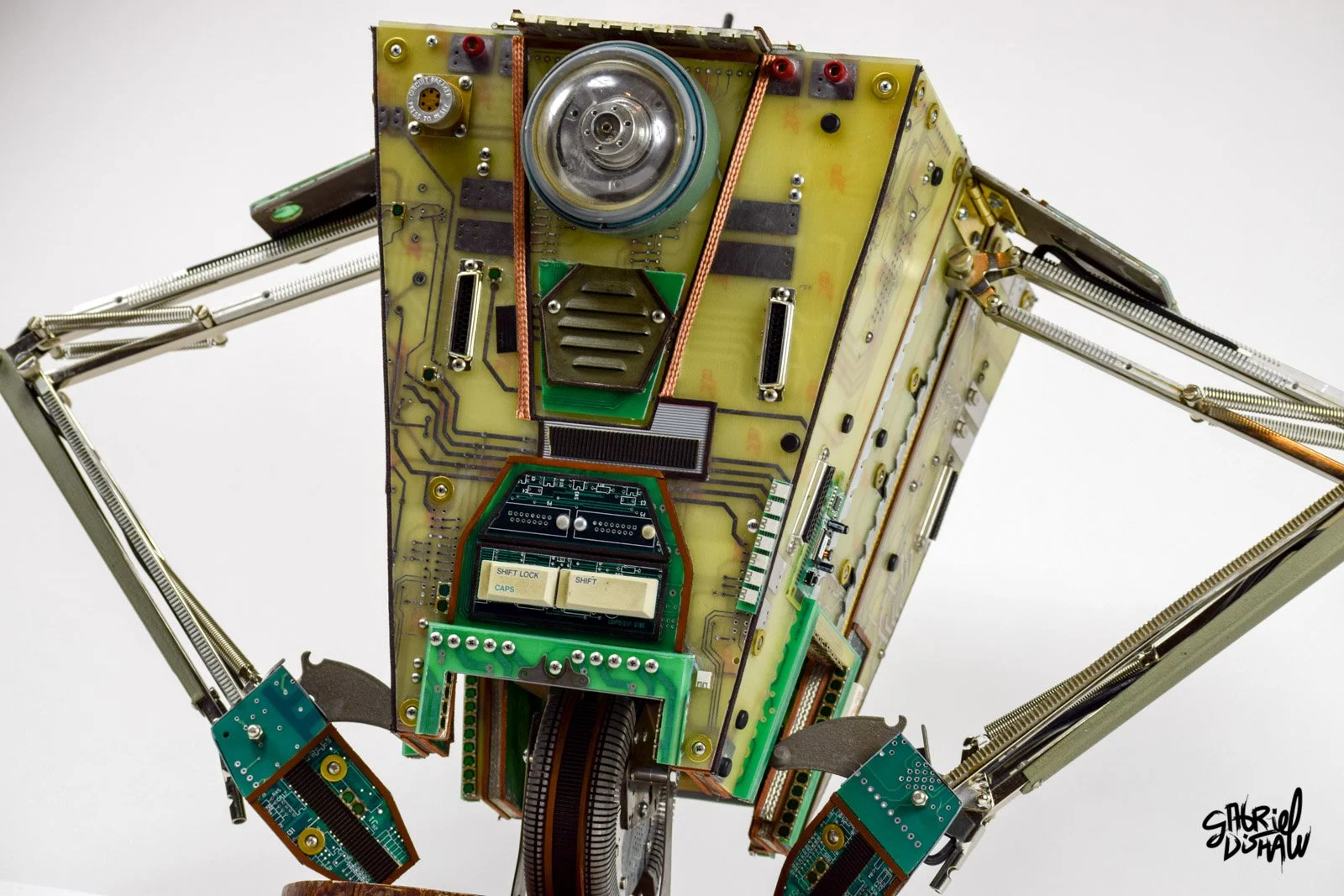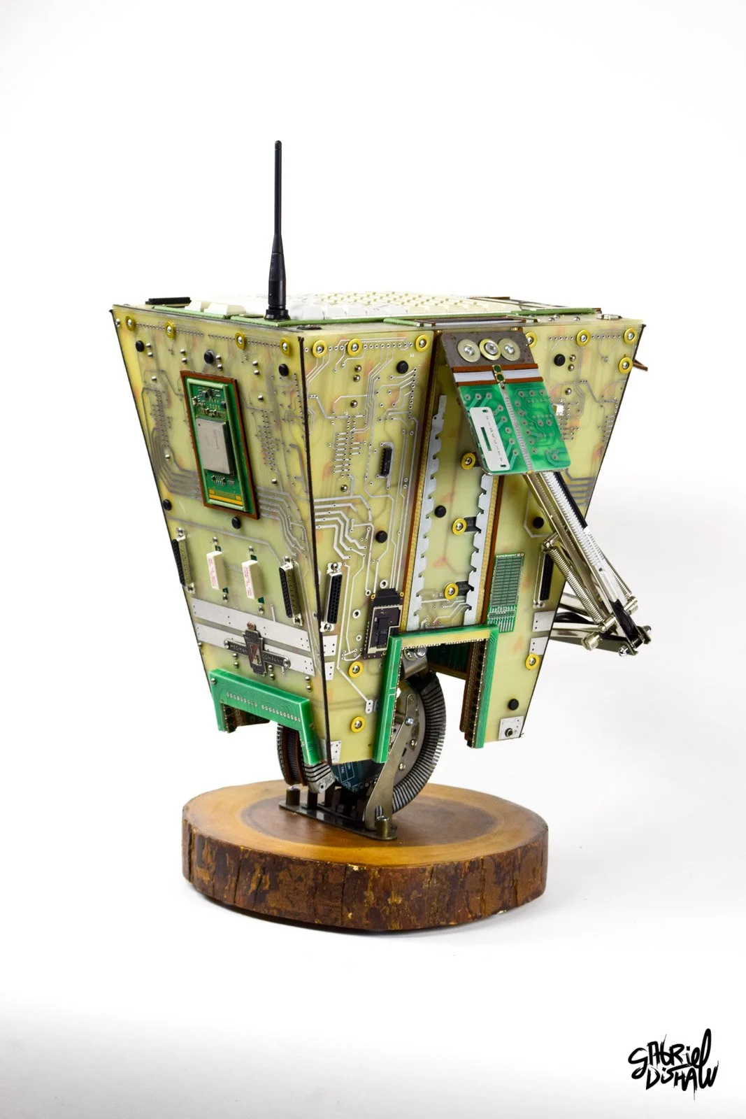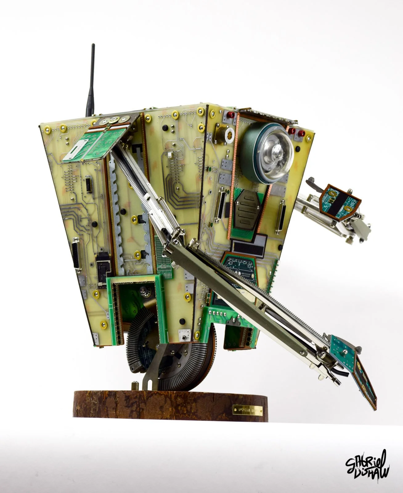Upcycled Claptrap - pays tribute to one of gaming’s most iconic robots from Borderlands through the creative use of reclaimed technology. Handcrafted by Gabriel Dishaw from e-waste and found materials, this sculpture transforms discarded electronics into a character full of humor and personality. Upcycled Claptrap embodies the spirit of innovation and sustainability, turning tech waste into a collectible piece of gaming-inspired art.