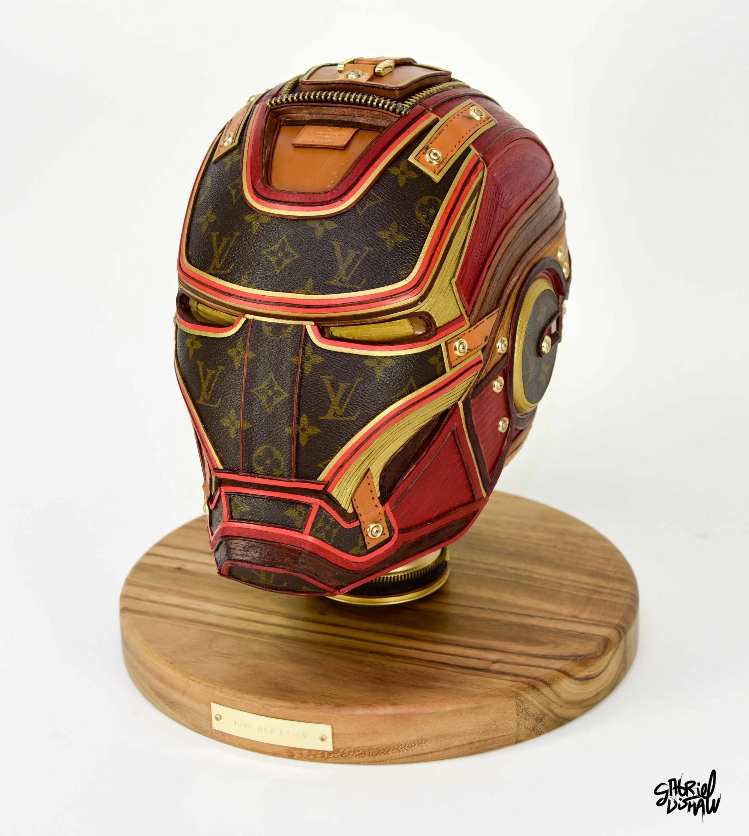 This upcycled Iron Man was inspired/modeled after the iconic Luxury Brand Louis Vuitton and was created using a vintage piece of Louis Vuitton luggage including other upcycled materials.