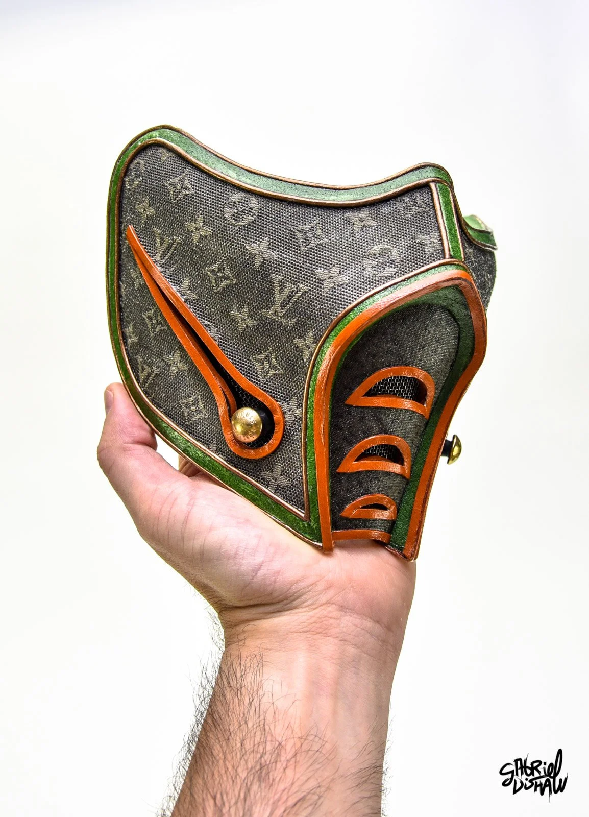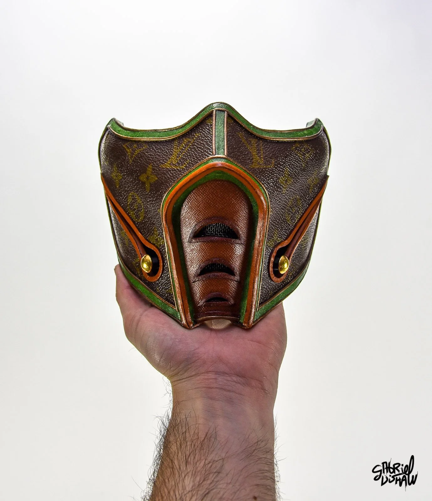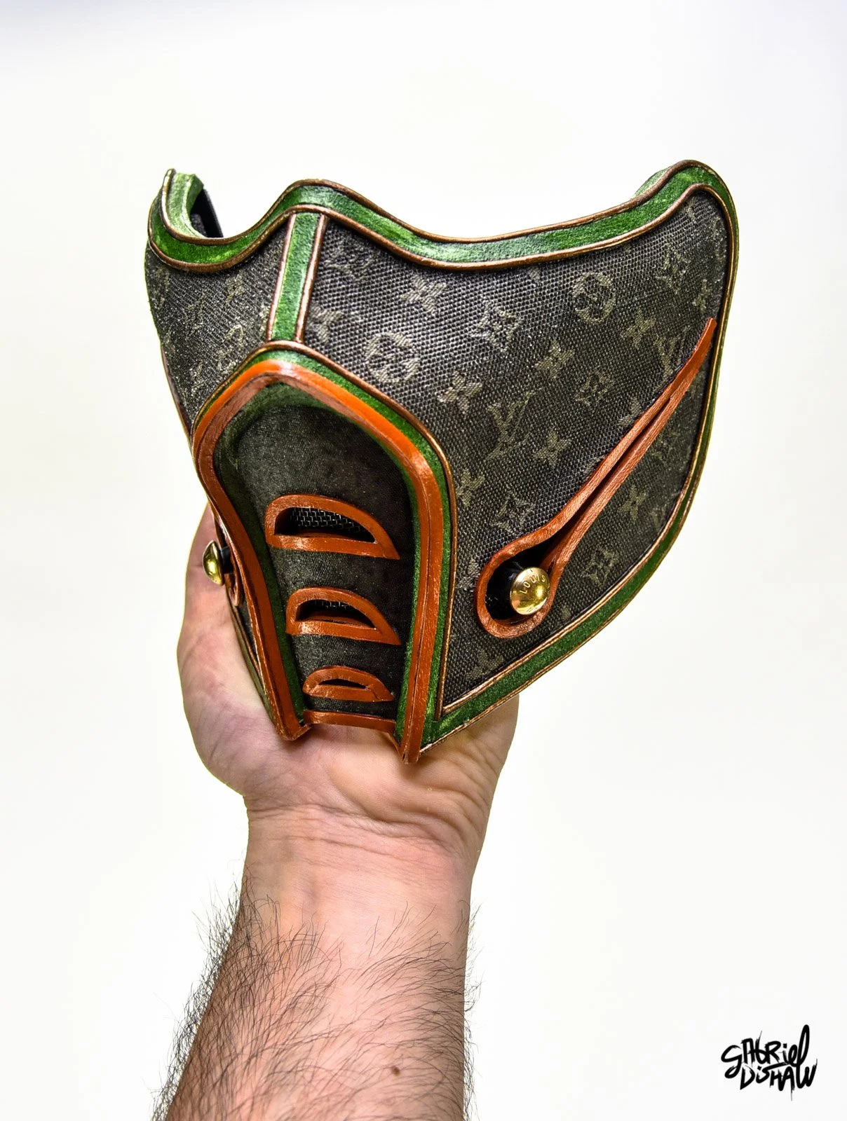 Reptile LV Mask Series - captures the primal, stealth-driven essence of Mortal Kombat’s legendary fighter through the lens of luxury upcycling. Handcrafted by Gabriel Dishaw using authentic vintage Louis Vuitton materials and reclaimed components, each mask merges the reptilian design language of the character with couture craftsmanship. Reptile LV Mask Series embodies transformation, precision, and sustainability — turning video game mythology into wearable art.