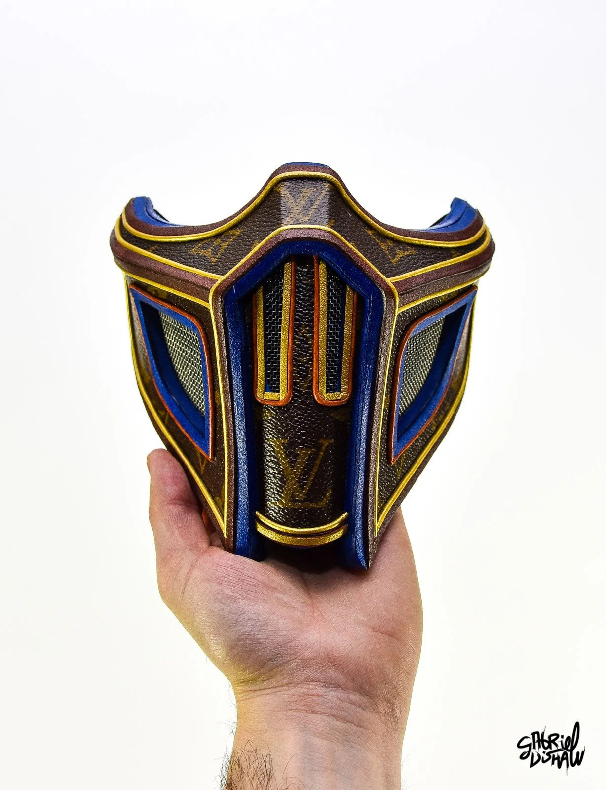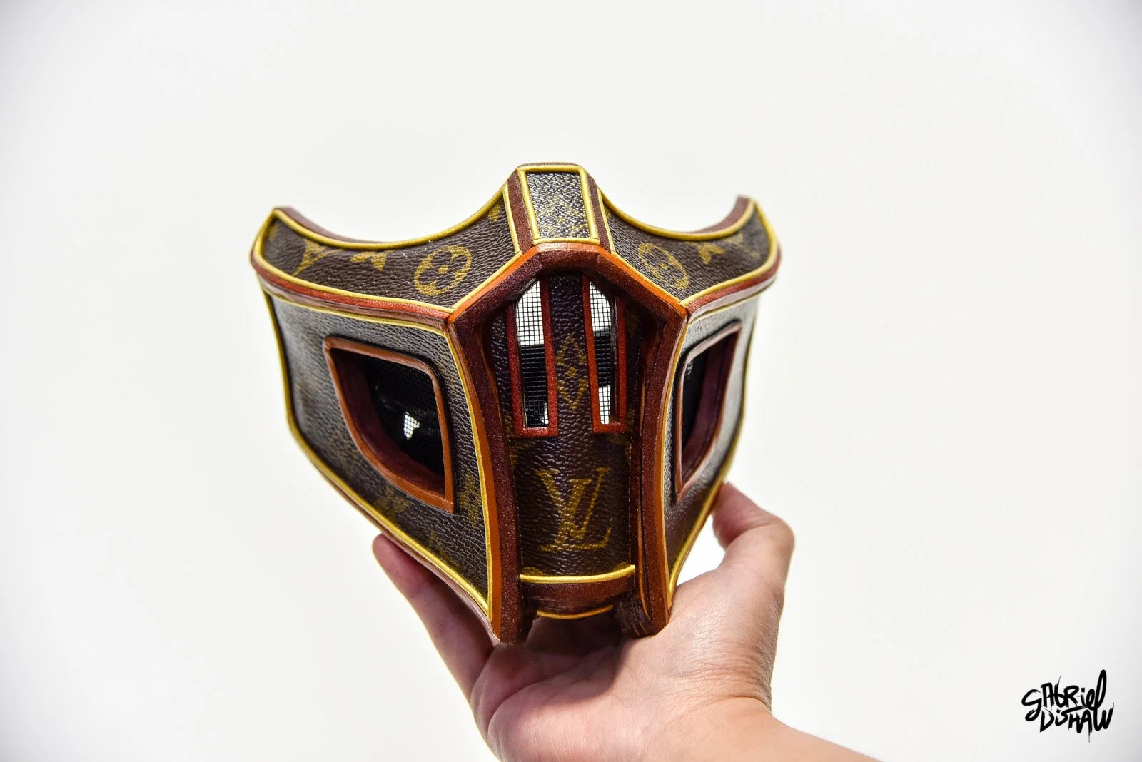 Noob Saibot LV Mask Series channels the dark, mysterious energy of one of Mortal Kombat’s most shadowy fighters through the lens of luxury upcycling. Handcrafted by Gabriel Dishaw using authentic vintage Louis Vuitton materials and reclaimed components, this series merges stealth and elegance in a couture reinterpretation of the character.