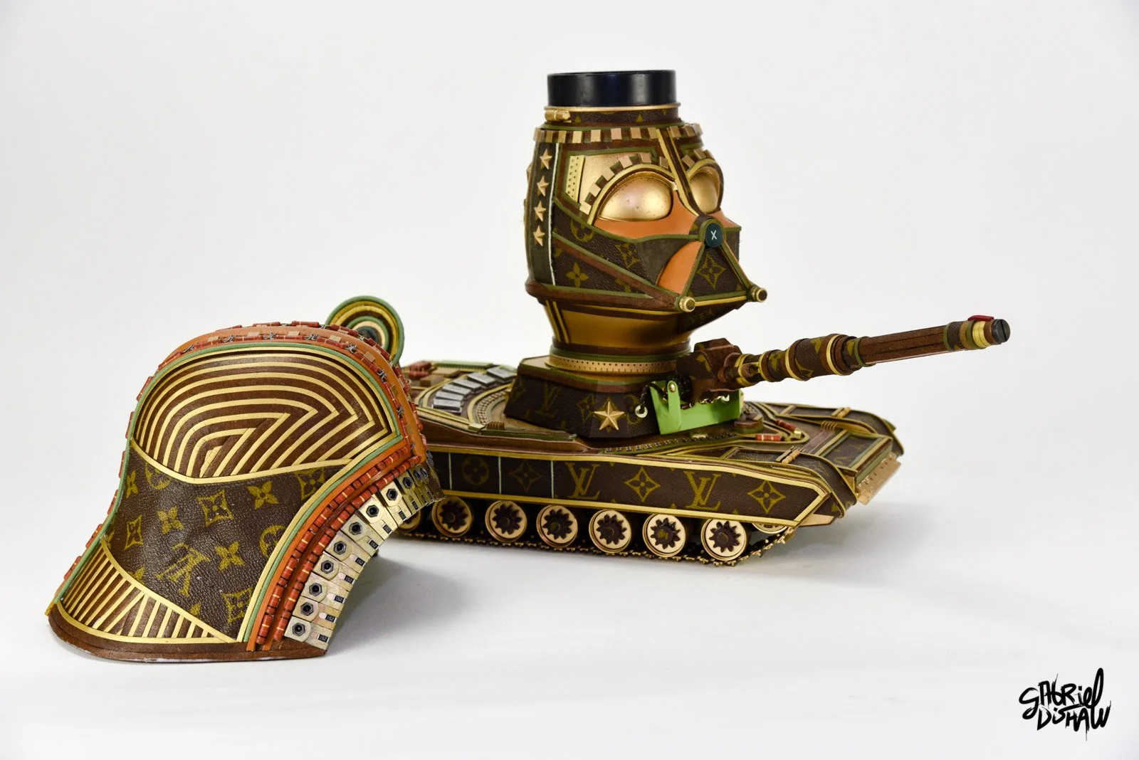 This upcycled Tank Vader was inspired/modeled after the iconic Luxury Brand Louis Vuitton and was created using a vintage piece of LV luggage.