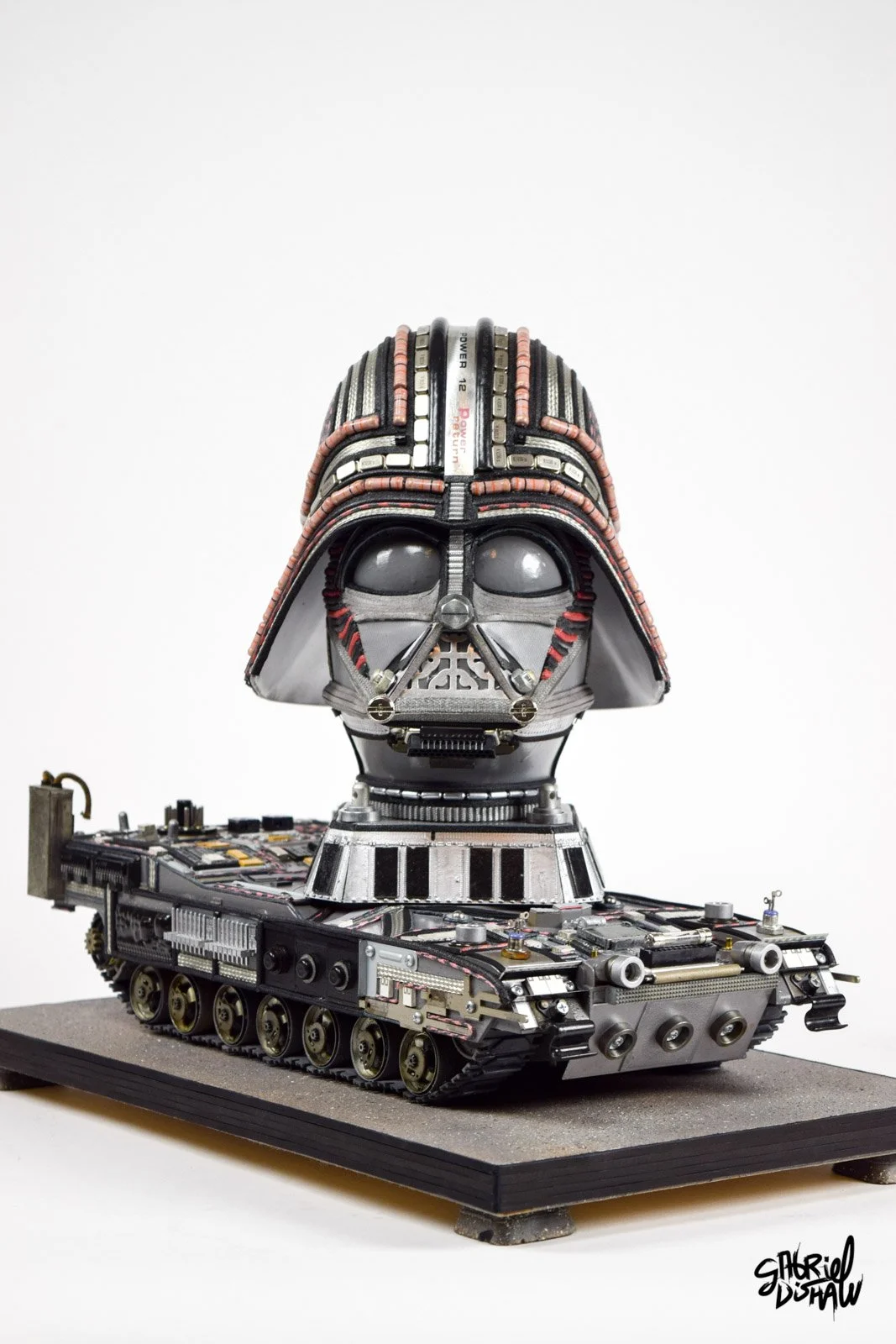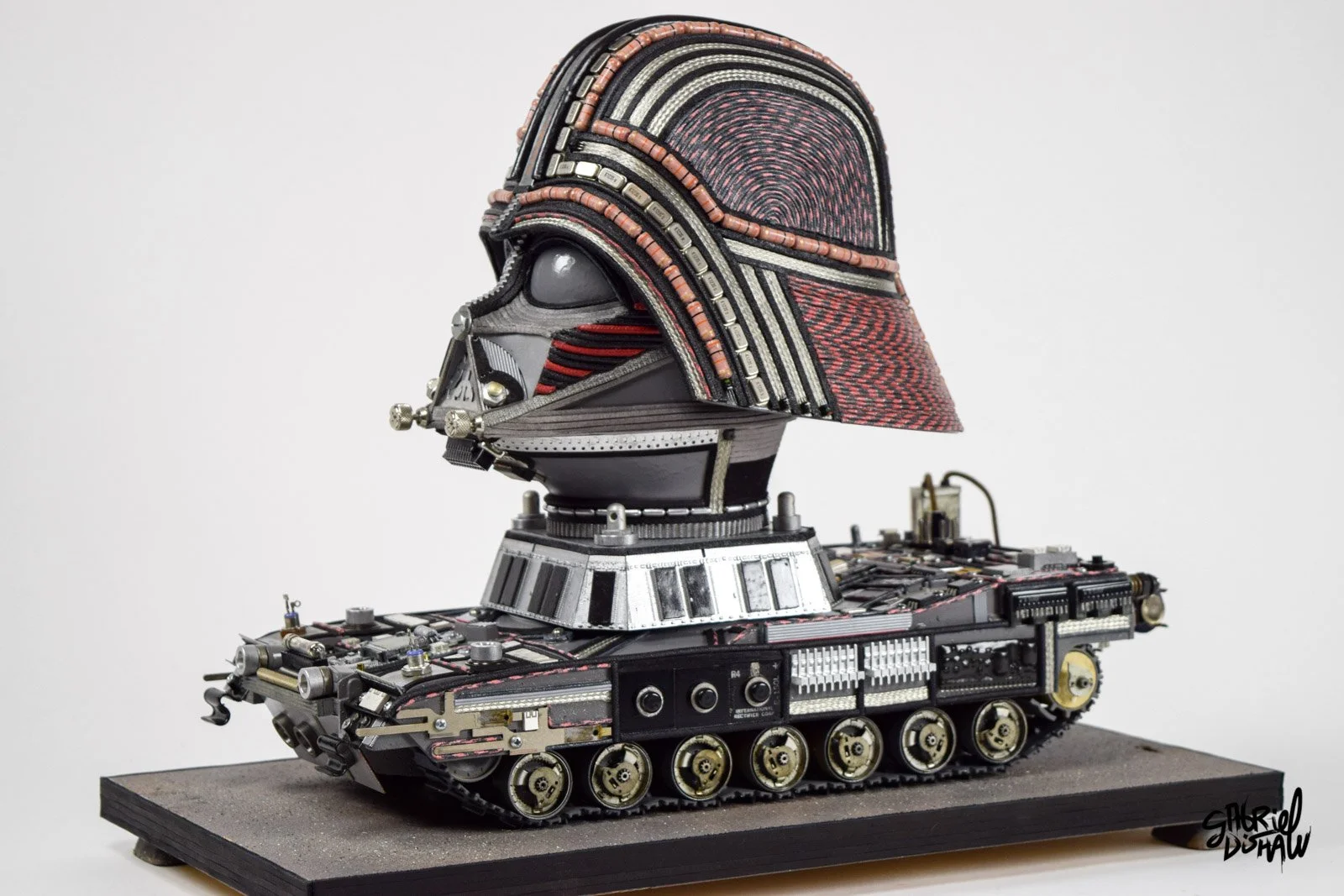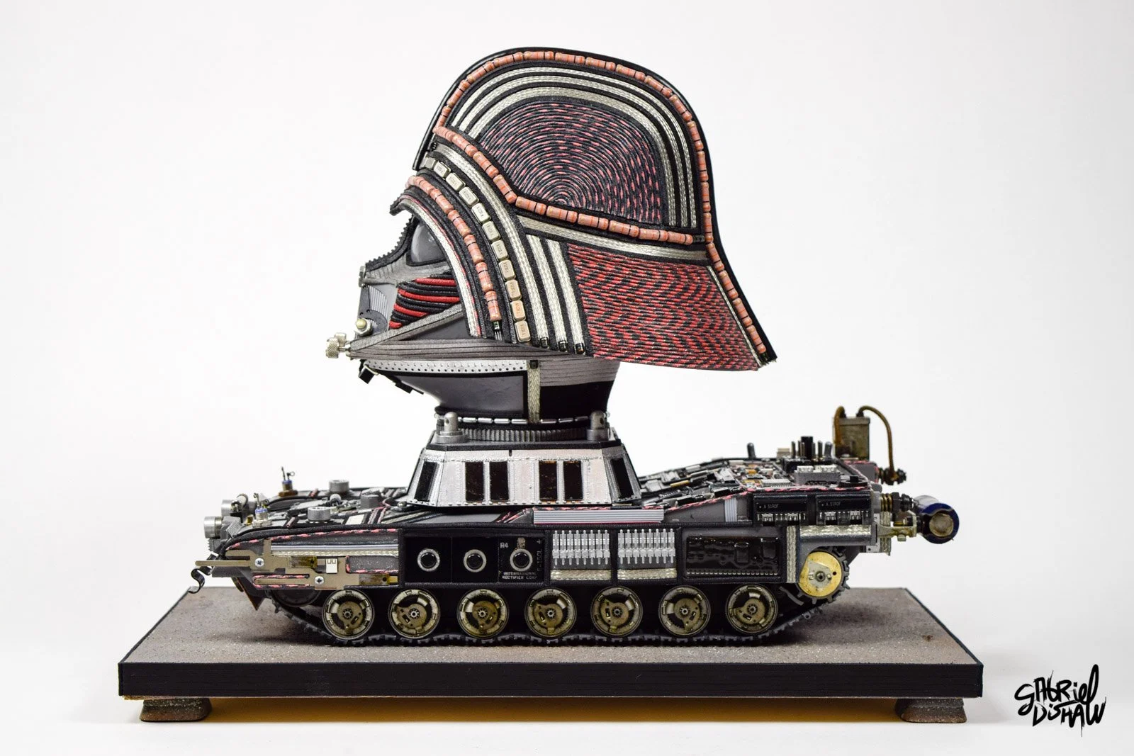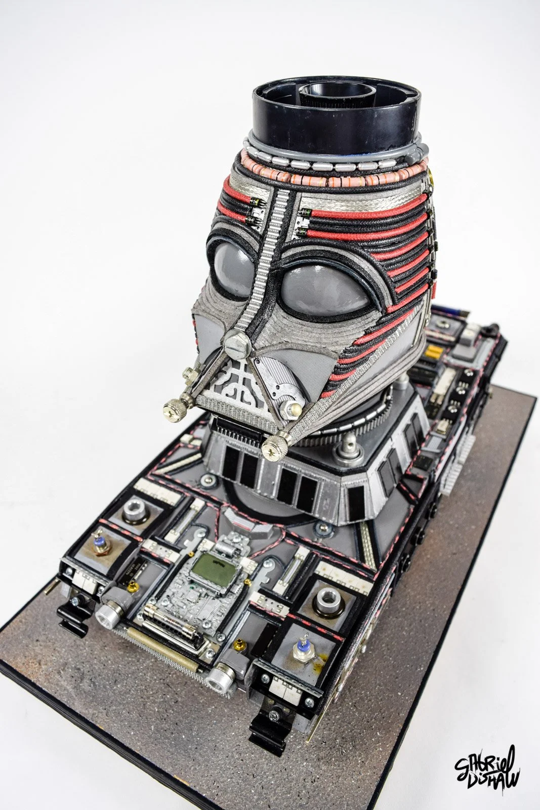 My Darth Vader and Tank Mash-Up Series reimagines one of pop culture’s most powerful figures through a mechanical, industrial lens. Built from upcycled e-waste and found materials, this early work merges the form of Darth Vader with the structure of a tank — exploring themes of strength, conflict, and transformation.