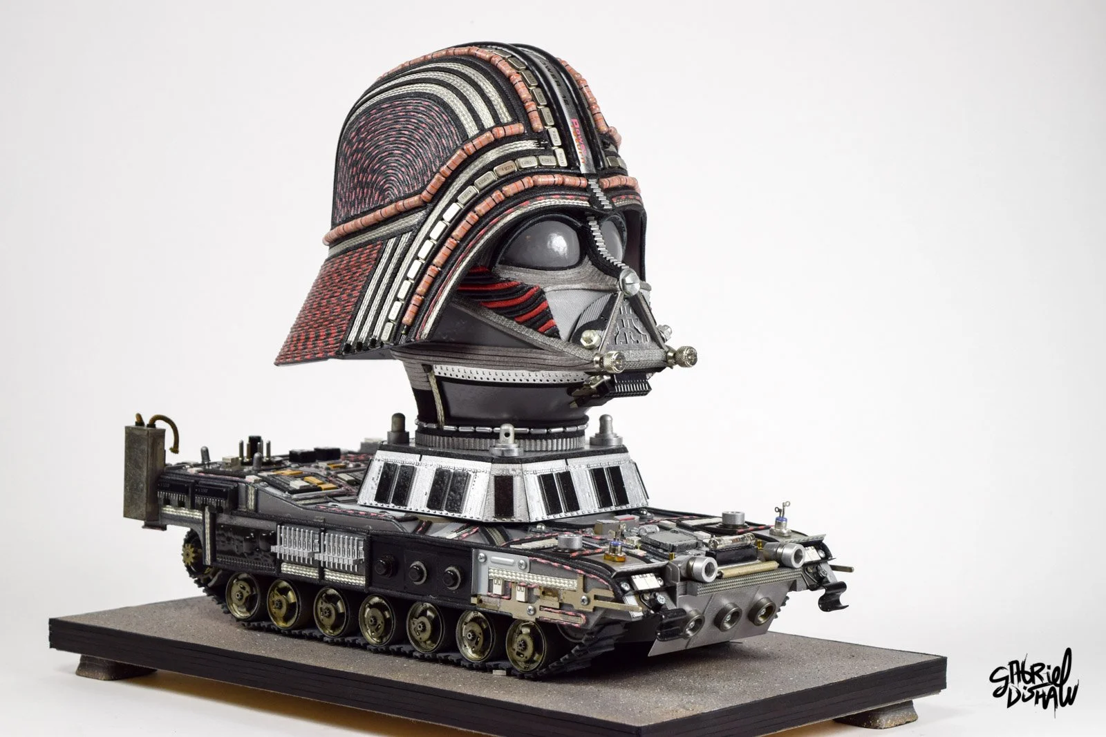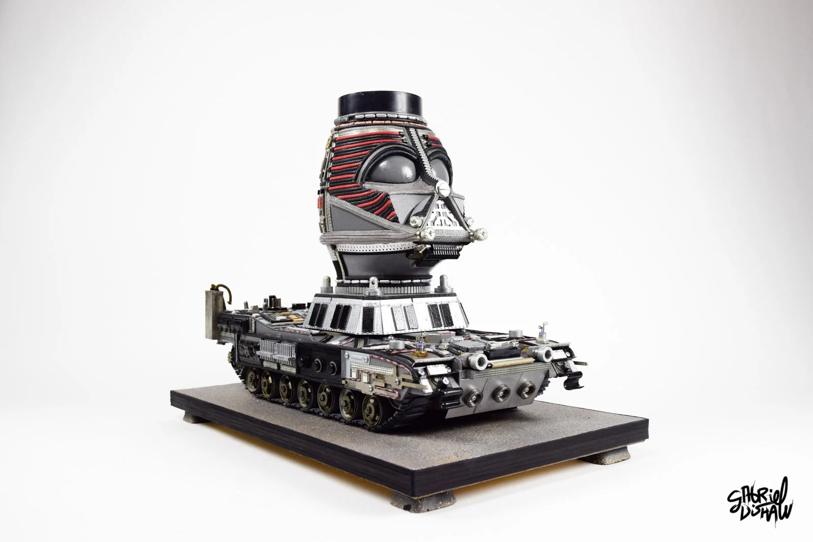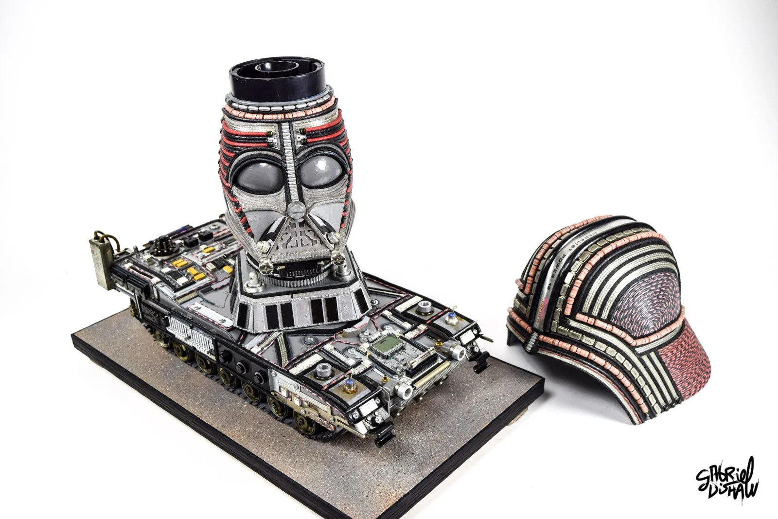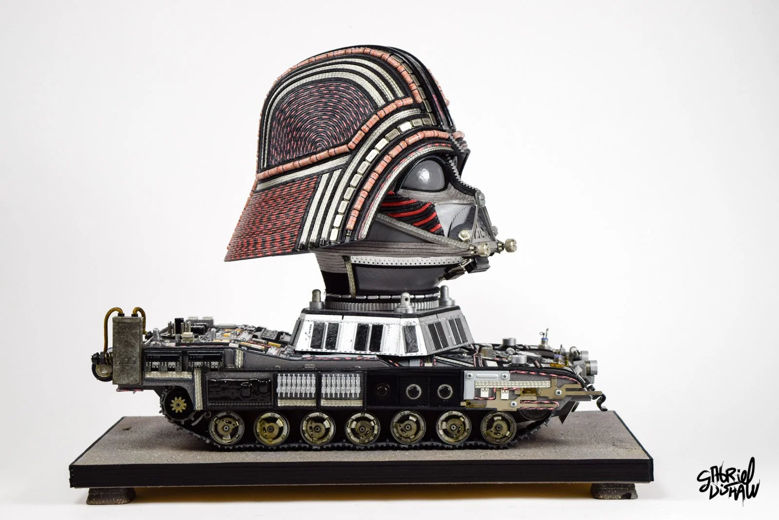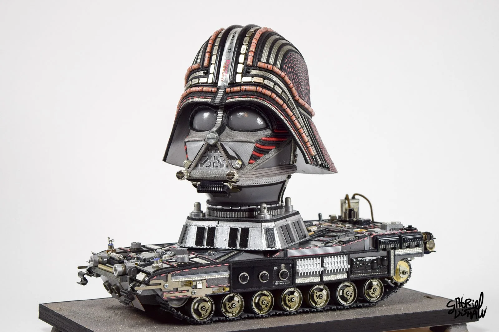 My Darth Vader and Tank Mash-Up Series reimagines one of pop culture’s most powerful figures through a mechanical, industrial lens. Built from upcycled e-waste and found materials, this early work merges the form of Darth Vader with the structure of a tank — exploring themes of strength, conflict, and transformation.