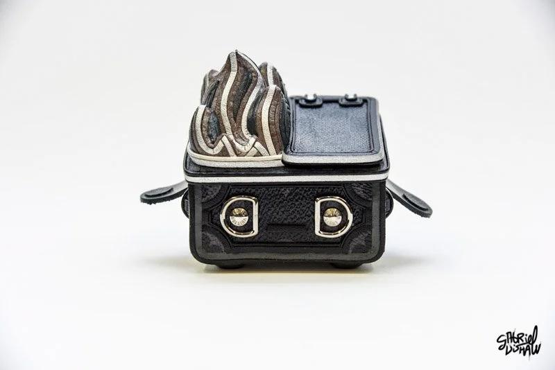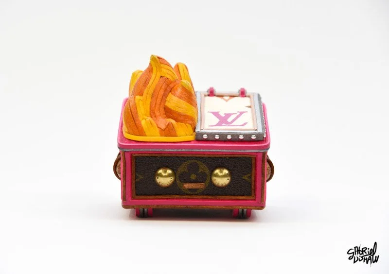 Dumpster Fire Lux - Drawing inspiration from the iconic Dumpster Fire vinyl toy by 100%soft, I have explored a Luxury-inspired version juxtaposing these two worlds. On this version I explored a more feminine touch with the colors and detailing around the garbage lid.