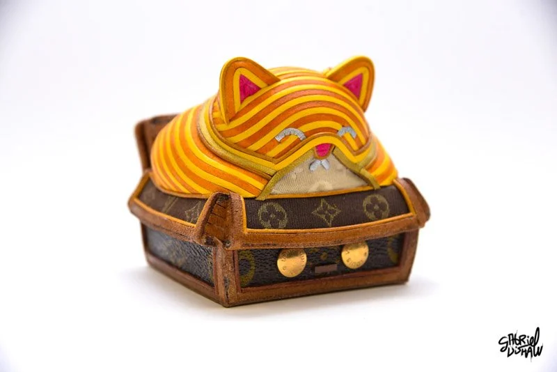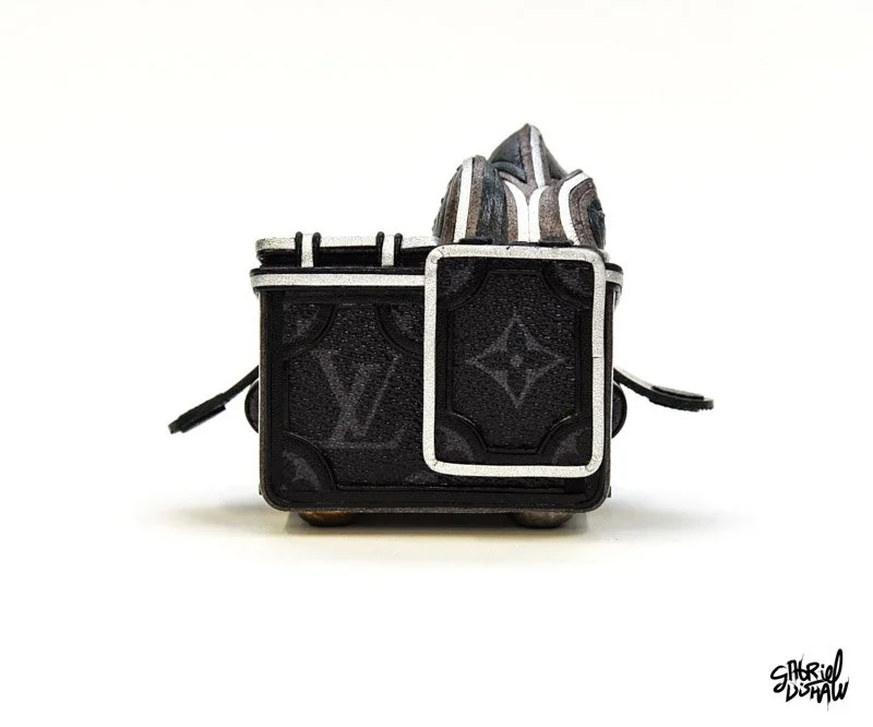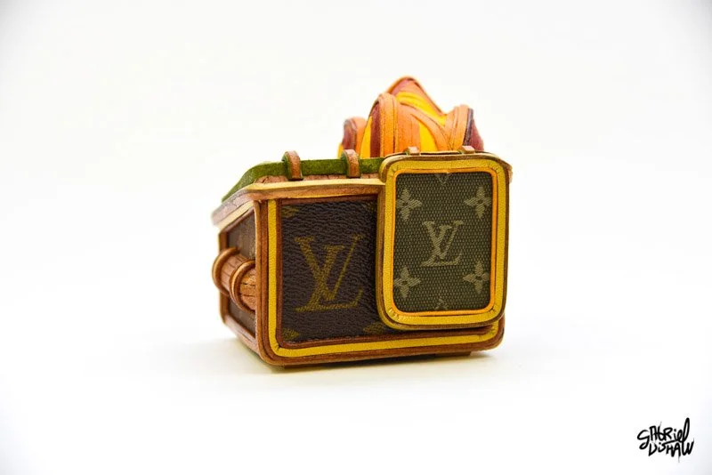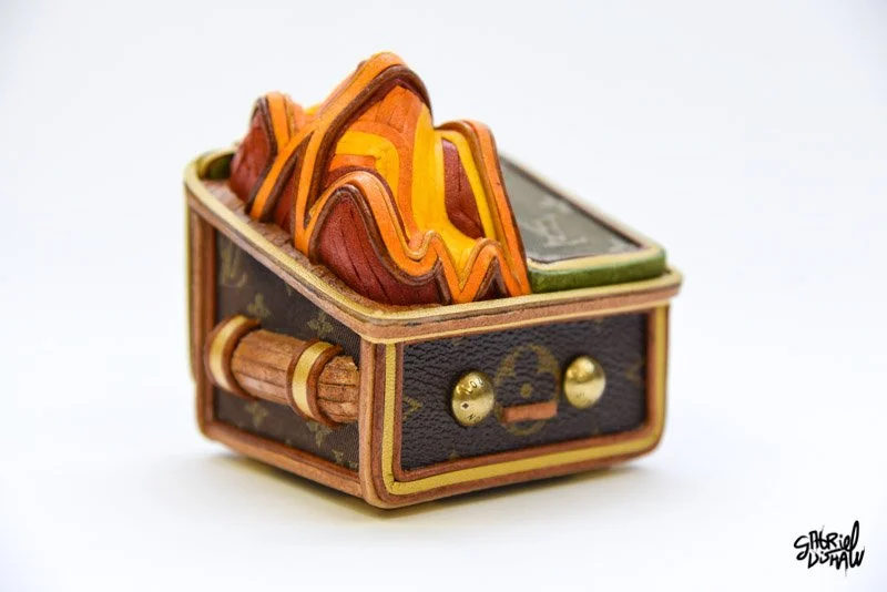 Drawing inspiration from the iconic Trash Fire vinyl toy by 100%soft, I have created a Luxury-inspired version that juxtaposes these two worlds. In this version, I used upcycled Louis Vuitton leather, hardware, and an assortment of other leathers.