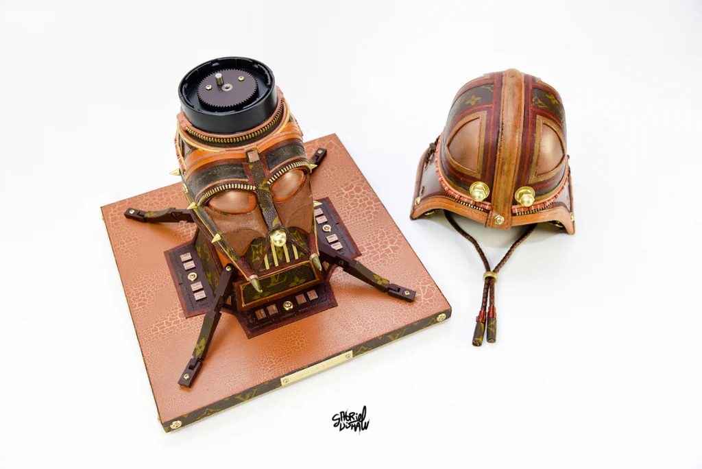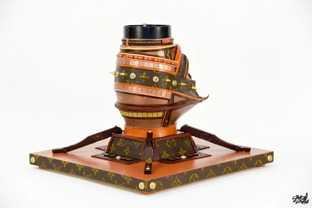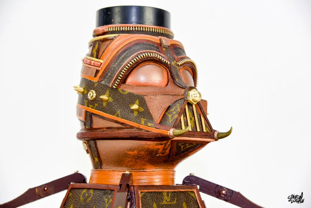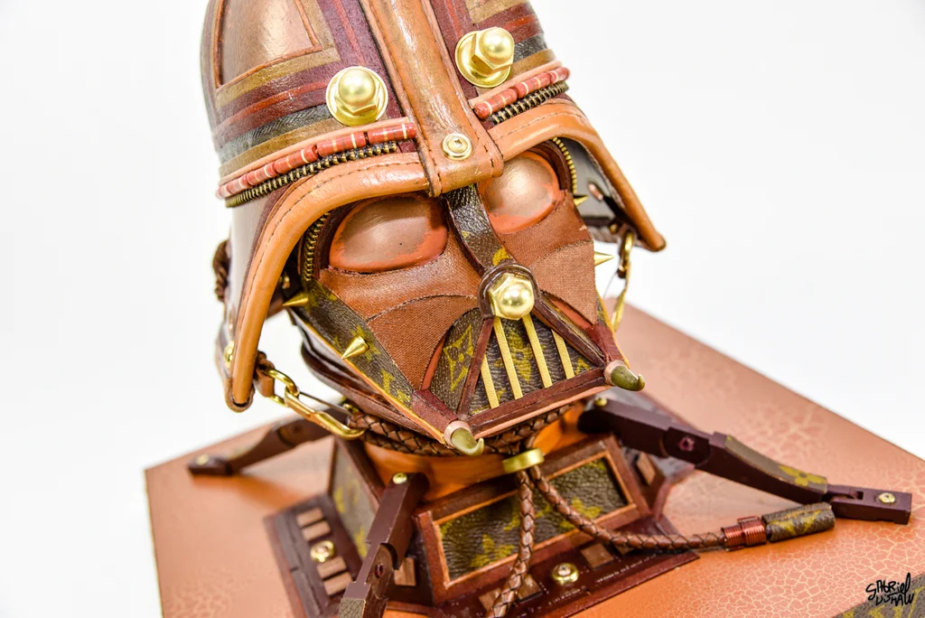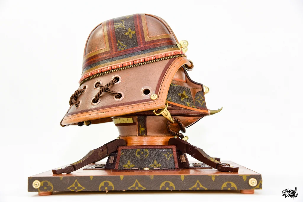 This upcycled Vader was inspired/modeled after the iconic Luxury Brand Louis Vuitton and was created using a vintage piece of LV luggage.