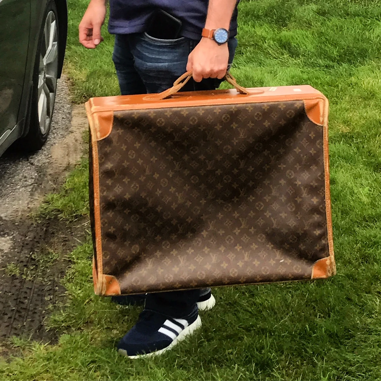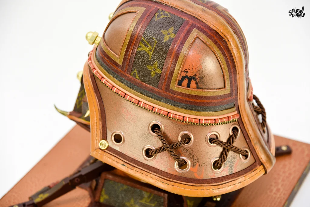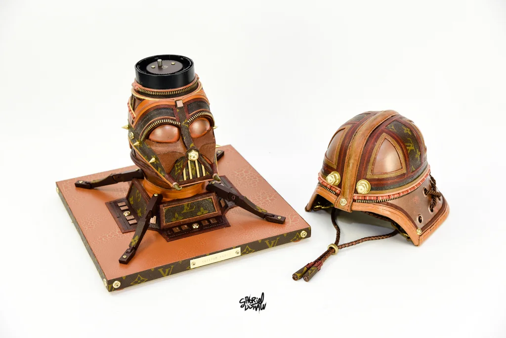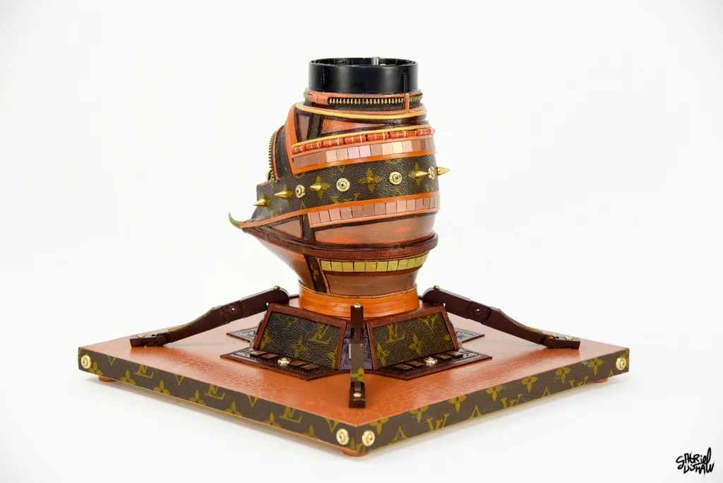 This upcycled Vader was inspired/modeled after the iconic Luxury Brand Louis Vuitton and was created using a vintage piece of LV luggage.